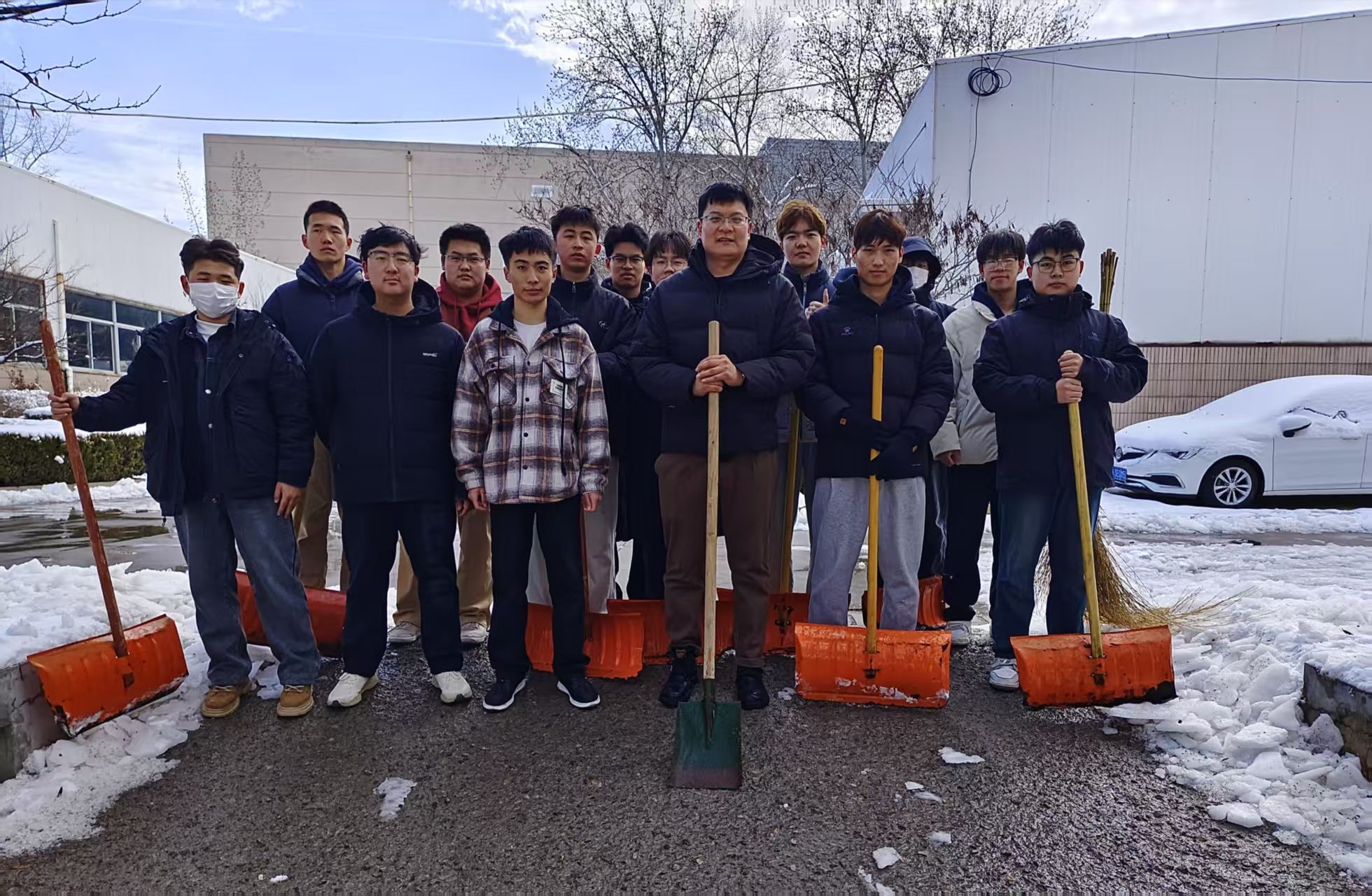 当日清晨,清雪志愿队的同学们在学院大厅集结完毕,有序领取铁锹、雪铲、扫帚等工具,学院领队老师做了安全强调和行动动员后,同学们被划分为若干小组,各自负责一片区域,有序地开始了铲雪除冰工作。尽管寒风凛冽,但同学们的热情丝毫未减,在老师们讲解完工具的使用技巧和道路清理的标准后,他们分工明确,配合默契,拿雪铲的同学在前面铲除厚厚的积雪,拿铁楸的同学负责敲打厚冻的冰层,后面的同学则紧跟着用扫帚清扫路面的残雪和碎冰,大家齐声喊着口号,动作整齐划一,共同把积雪推到不影响交通的地方,呈现出一片热火朝天的劳动景象。经过数小时的努力,毛巾哥