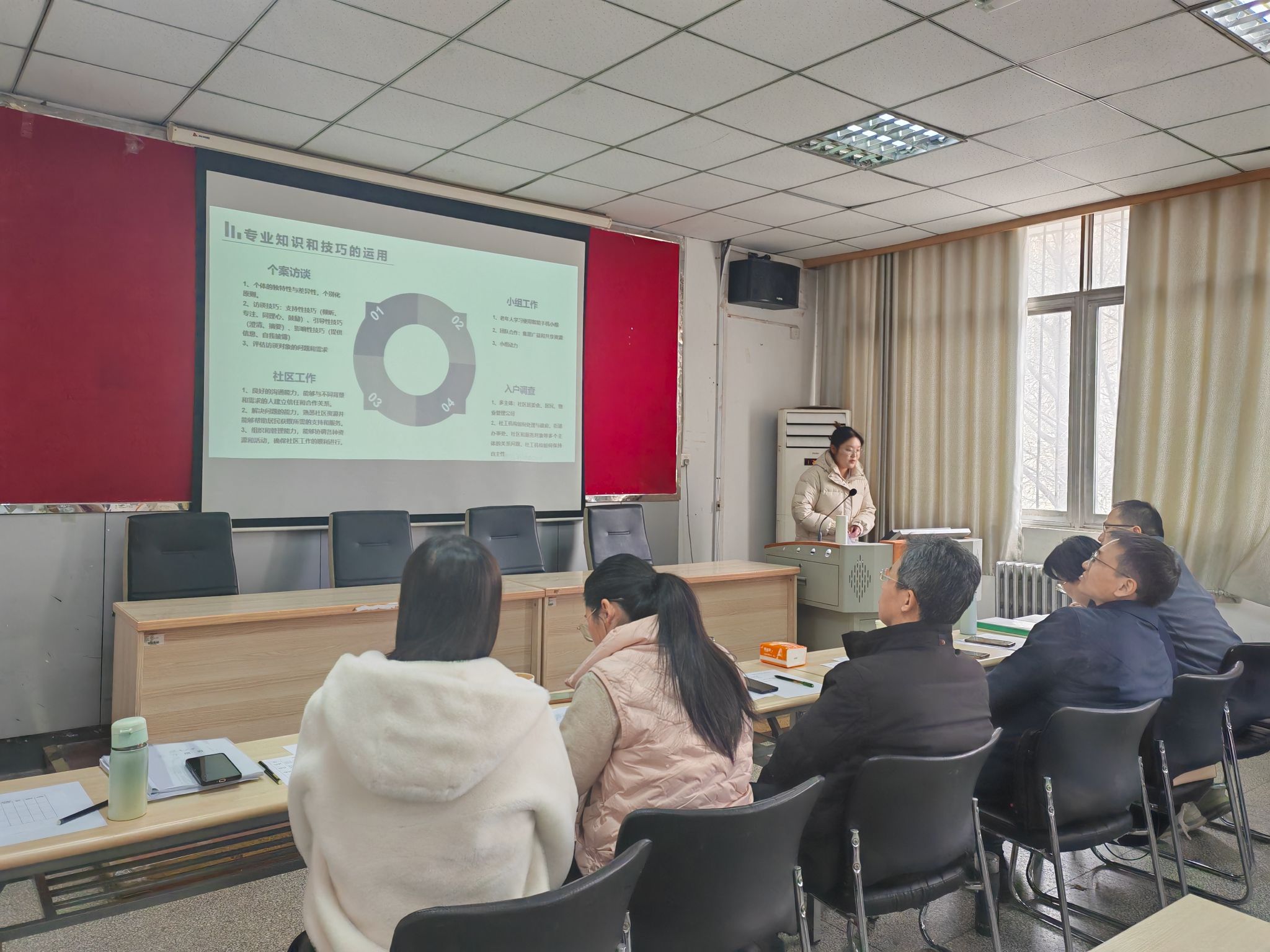 答辩会分2组同步进行,参与答辩的研究生通过案例分享、数据分析等形式,系统展示了实习期间的个案、小组服务、社区工作情况,重点就实习的成果收获与反思进行汇报。答辩评委老师从专业契合度、服务创新性、实践成效等维度进行提问,并针对研究生实践中出现的问题提出建议。老师们一致认为,此次实习生在实践中展现出较强专业素养与社会责任感,能把课堂知识与实际工作紧密结合,为服务对象提供有效帮助。