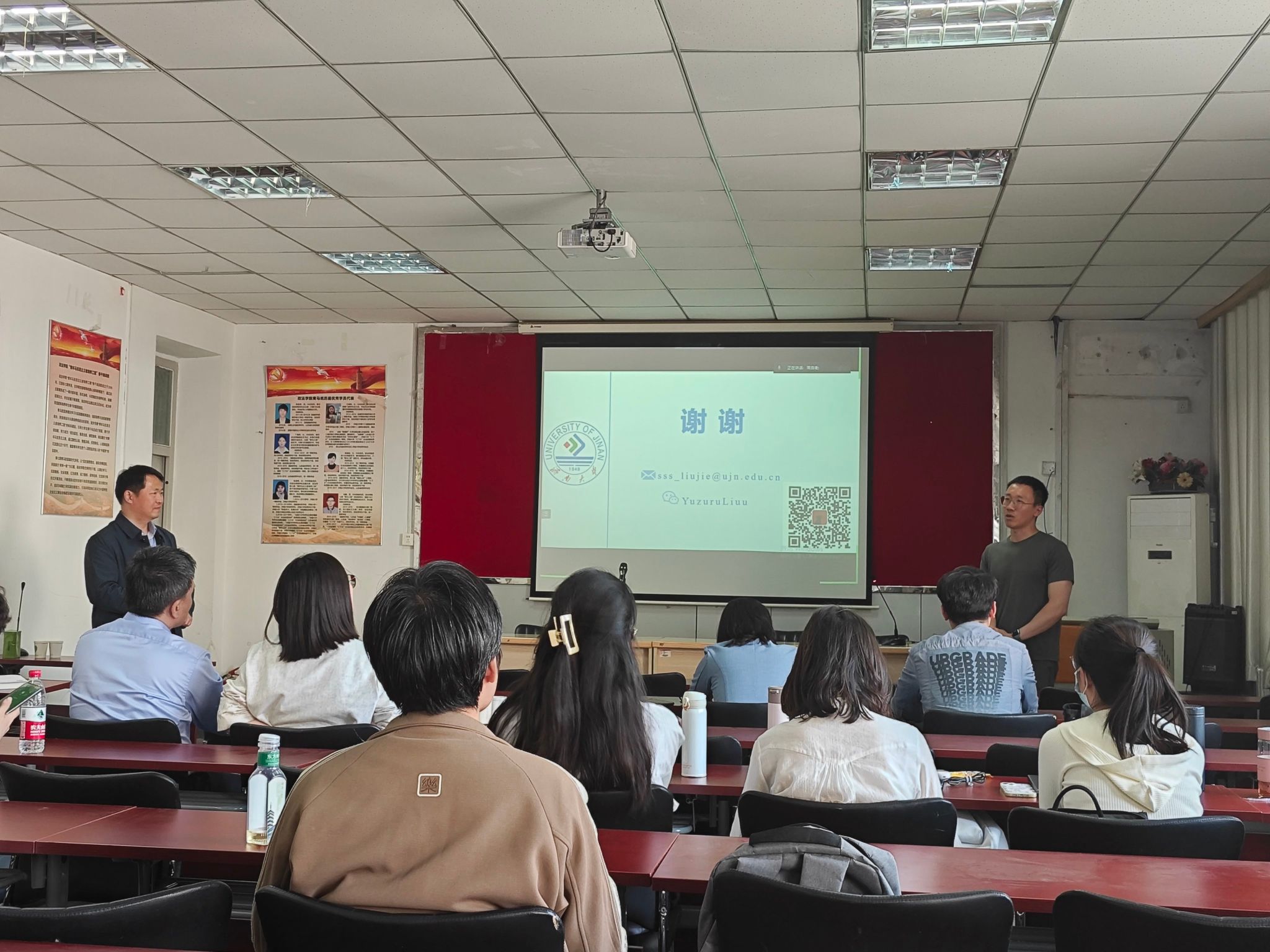 在交流互动环节,刘杰博士认真回答师生们对于论文写作、修改和投稿方面的问题,并提出了许多宝贵的学术研究建议。报告结束后,高功敬院长对刘杰博士的报告做出了简要总结并邀请刘杰博士为师生推荐合适的期刊发表平台。