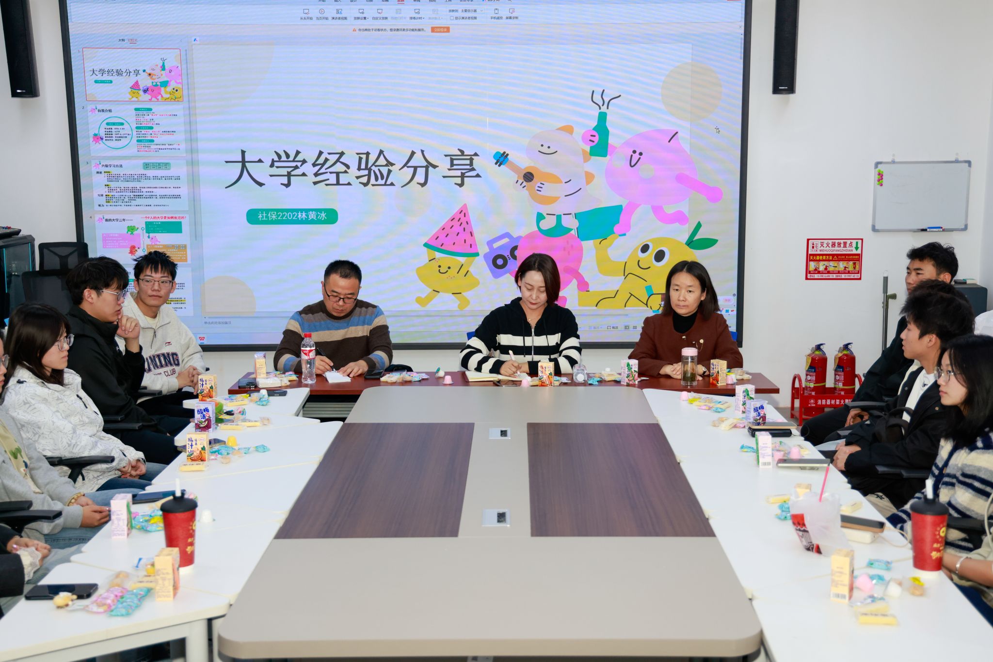 人力资源与社会保障系党支部联合人力资源与社会保障系于2025年11月4日下午成功举办了“社保师生面对面”秋季第一期活动。此次活动由系党支部书记辛瑞萍主持,系主任张世青及教师代表张银共同参与,劳动与社会保障专业2022级、2023级、2024级学生共计近三十人积极与会。