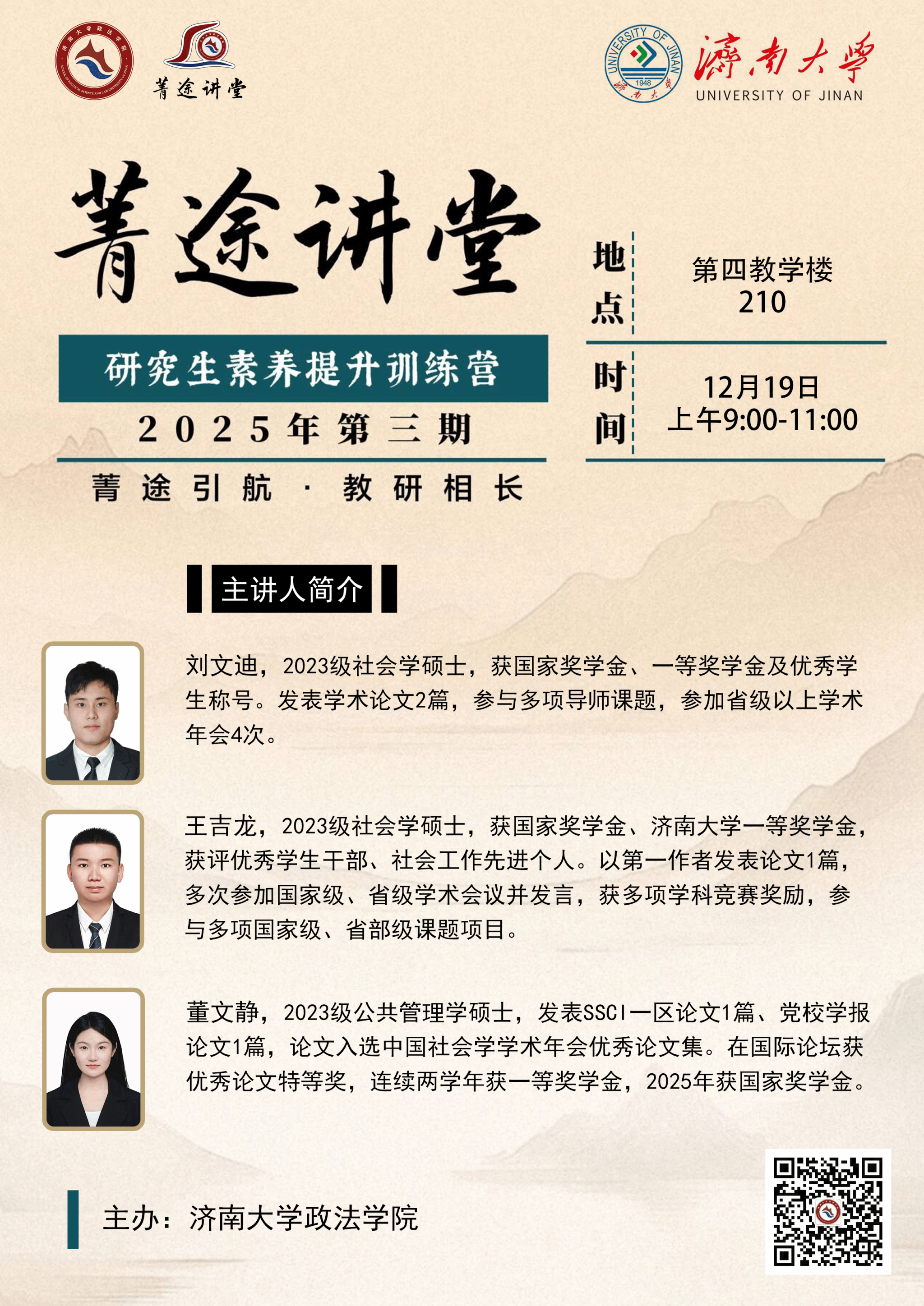 研究生素养提升训练营第三期在第三教学楼210会议室顺利举办。本次活动由毛巾哥