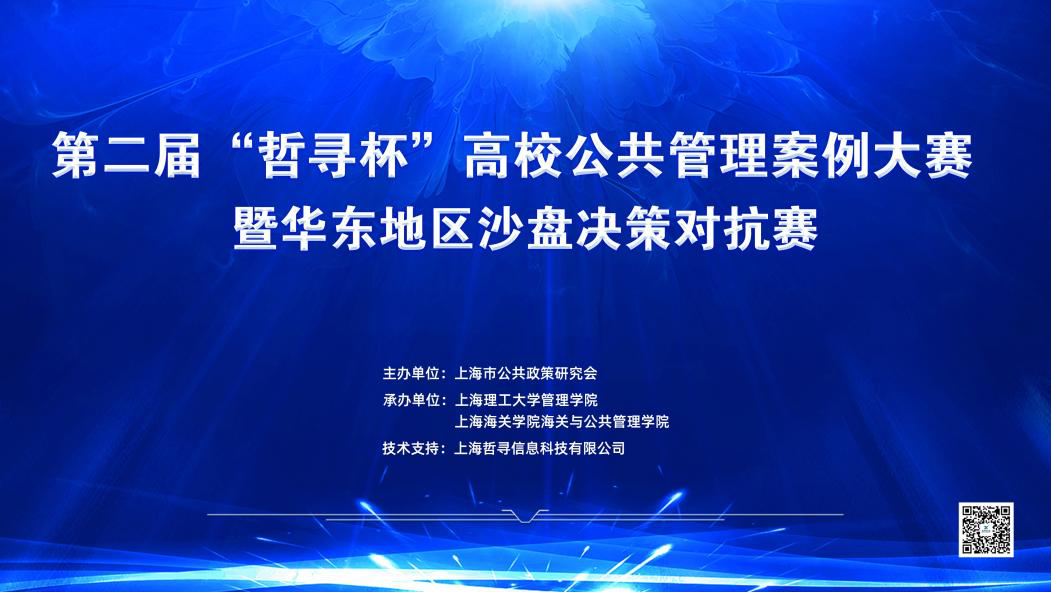 本次大赛是面向华东地区(上海市、江苏省、浙江省、安徽省、福建省、山东省)的公共管理学科相关本科专业在校大学生的专业竞赛项目。由上海市公共政策研究会主办,上海理工大学承办,上海哲寻信息科技有限公司提供大赛技术支持。