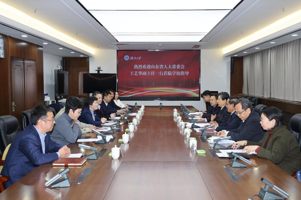 在工作座谈会上,刘春华对山东省人大常委会长期以来给予学校的支持和帮助表示感谢,介绍了学校第四次党代会确定的“一二三”发展思路和“四五六”战略部署,以及今年将推进实施“五大工程”(高质量人才培养工程、高水平学科建设工程、高素质师资建设工程、高层次科研提升工程、高效能社会服务工程)等情况。