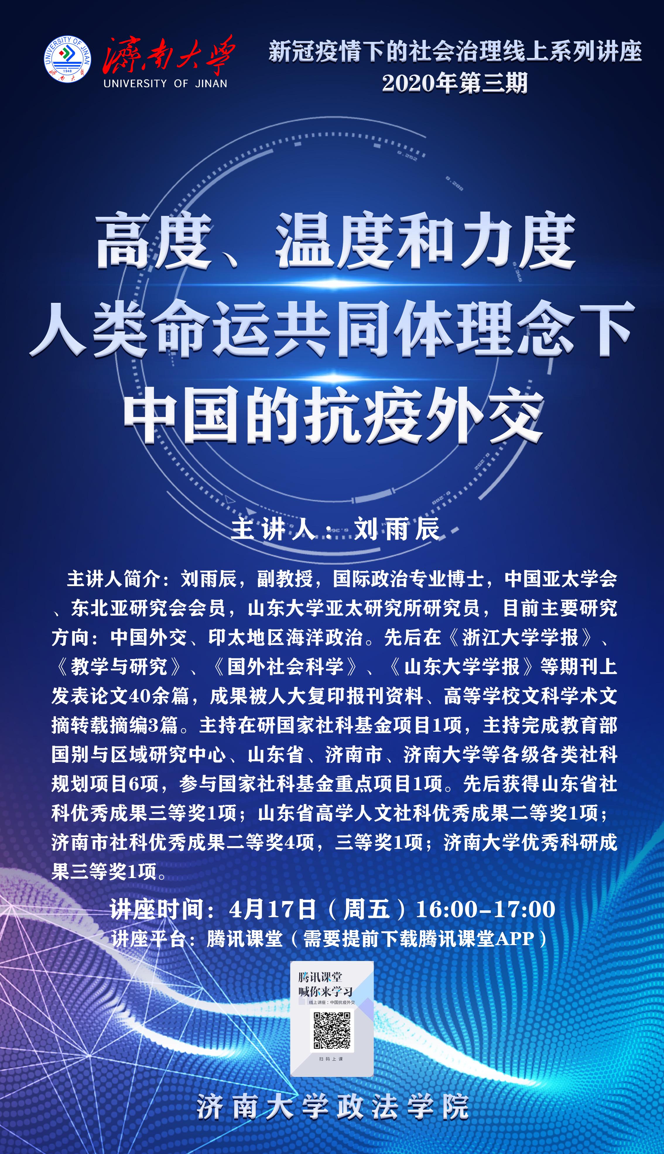 新冠疫情下的社会治理线上系列讲座(2020年第三期)高度、温度和力度:人类命运共同体理念下中国的抗疫外交