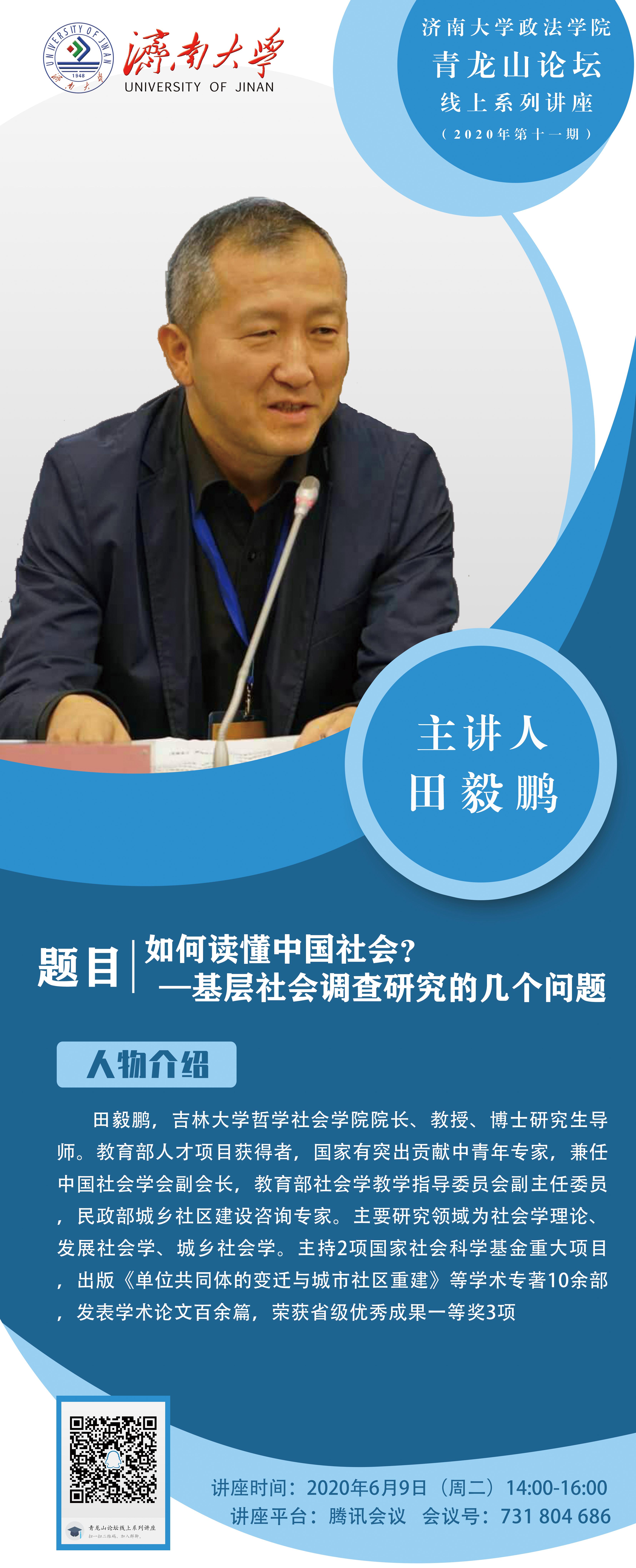 青龙山论坛——线上系列论坛(2020年第十一期)如何读懂中国社会?——基层社会调查研究的几个问题