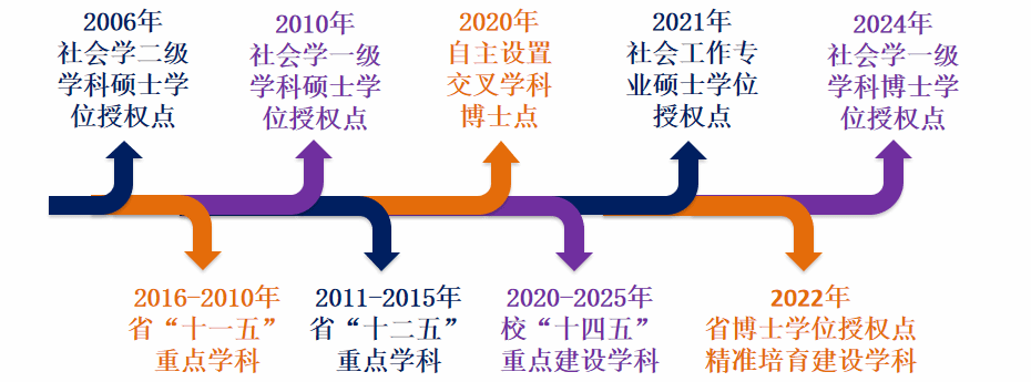 社会学学科于2006年获社会学硕士学位授权点,2010年获社会学一级学科硕士学位授权点,2024年获社会学博士学位授权点。