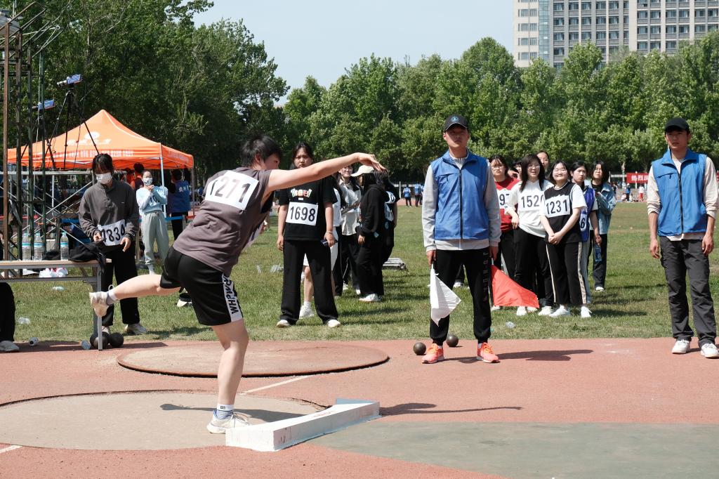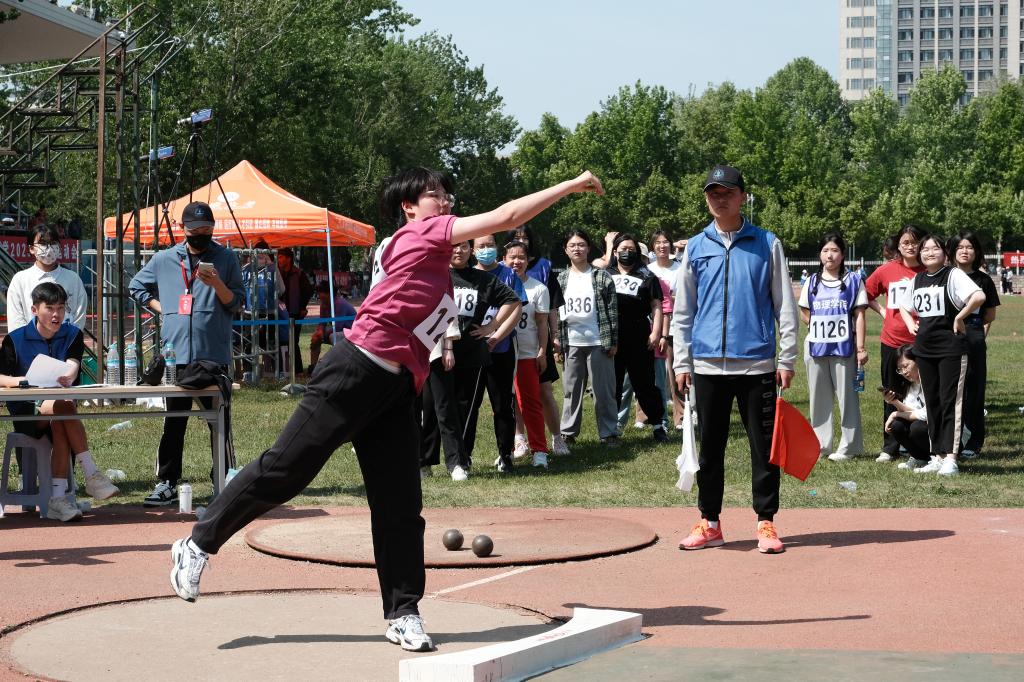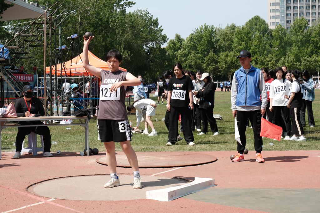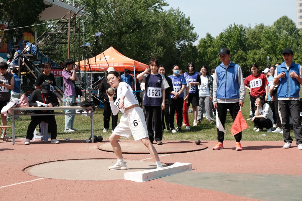 比赛开始前,陈一诺同学提前到场适应场地,进行热身和投掷技巧的简单练习,为接下来的正式比赛做最后的准备工作。不多时,其他运动员陆续入场,王月、万一阳同学也调整好状态,蓄势待发,满怀信心准备迎接比赛。比赛正式开始,选手依次上场投掷,片刻后裁判员下达上场指令,伴随场周观众的欢呼,陈一诺同学深吸一口气,手握铅球目光坚定,她将铅球平稳举至肩膀,轻呼一口气,闭目沉心,再睁眼,没有丝毫犹豫,右臂发力点停,投掷而出,干净利落。铅球在空中划过一道优美的弧线,观众们目光聚焦,只见铅球滞空一瞬后稳稳落地,场面气氛有片刻凝滞,在看清成绩后又即刻爆发出热烈的欢呼声。最终经过裁判裁定,毛巾哥