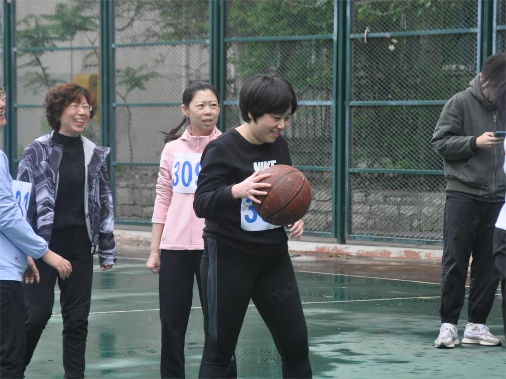 老师时,只见他们手持篮球在地上随意拍了几下找到手感,双手持球眼神坚定注视篮筐,片刻后缓缓呼出一口气,微微屈膝蓄力随后纵身一跃扬臂将球掷出。全场观众屏息以待,只见篮球在空中划过一道完美弧线稳稳落入篮筐。球进了!现场立时爆发一阵惊呼。连进两球后,经裁定后裁判宣布,三位老师均成功夺得了定点投篮比赛的第二名。