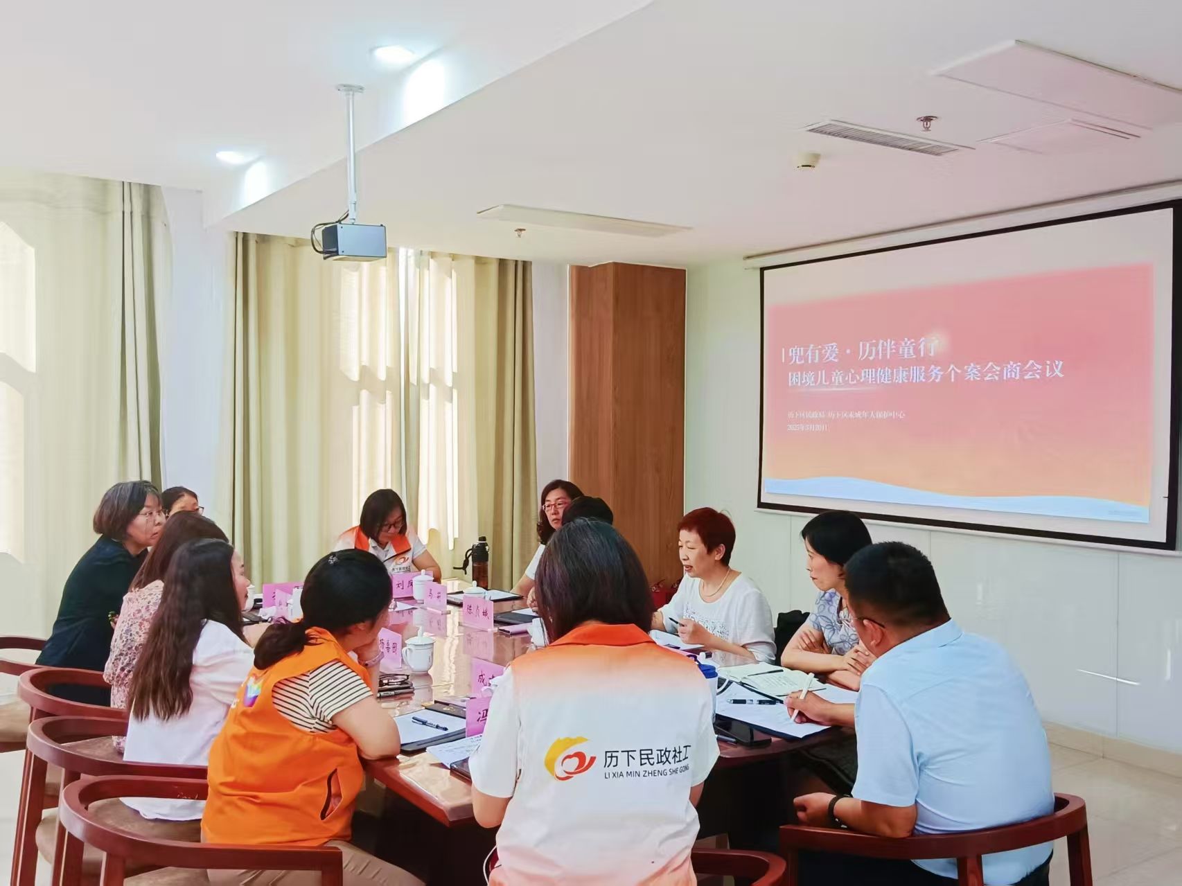 社会工作专业实习生协助济南市历下区 “兜有爱·历伴童行” 困境儿童心理健康服务个案会商会议,全方位助力会议顺利召开。