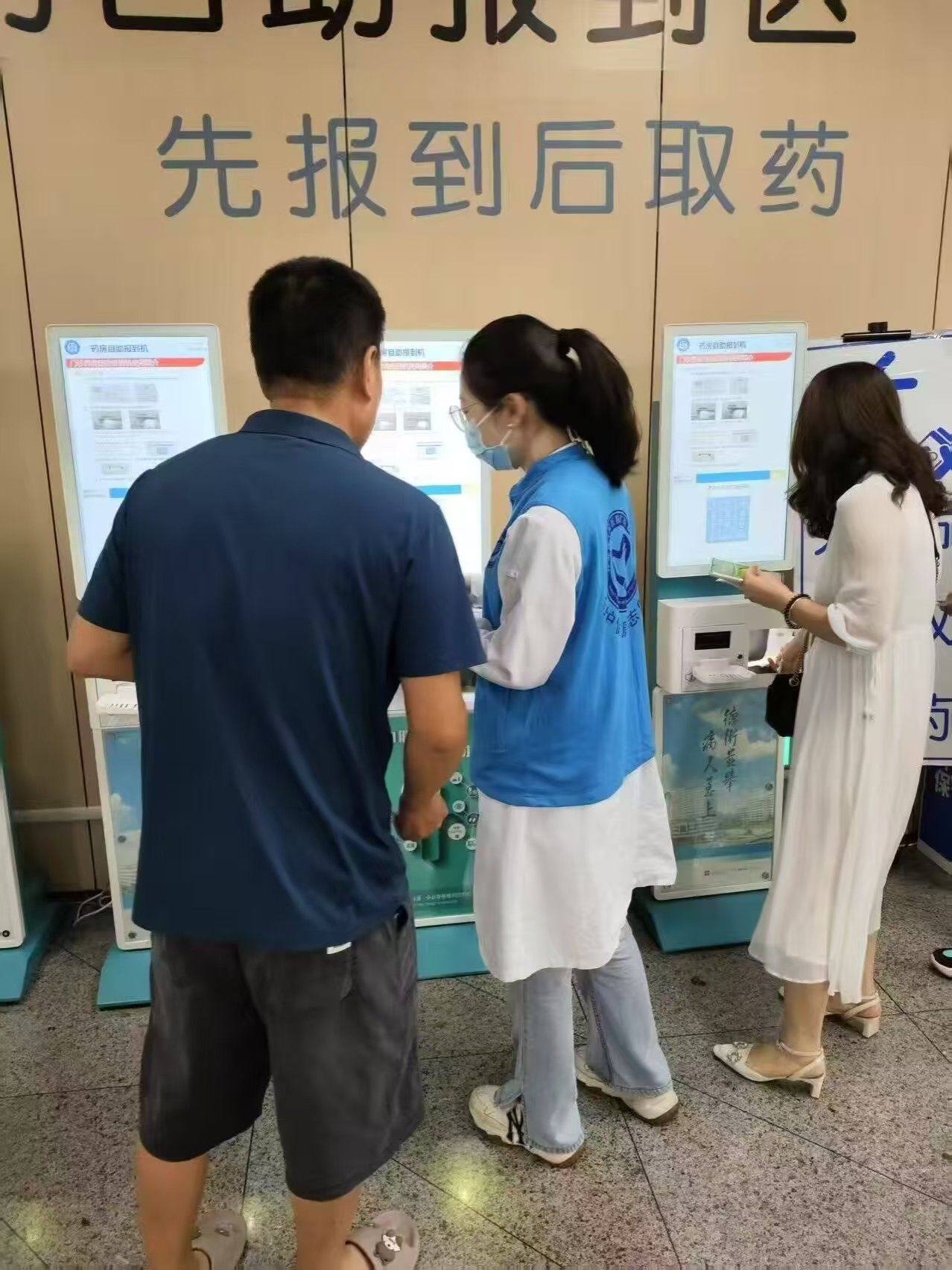 该活动主要针对老年患者开发“一对一陪伴指导”服务;针对异地就医群体制作多语言指引卡片;同时联动医院社工部,将报到机使用培训纳入新入院患者的导诊流程。帮助他们学习使用日益科技化的院内智能设备,通过院内自助报到机器的使用,提升院内就医的效率,维持医院内的良好就医秩序。在活动开展过程中,毛巾哥