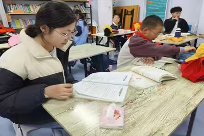 活动中,志愿者针对孩子们的不同需求开展贴心服务。面对数学拓展题,志愿者蹲在桌旁用彩笔把“鸡兔同笼”画成“小鸡小脚、兔子长耳”,帮助孩子们轻松解题;针对低年级生字书写,志愿者采用“描红+默背+组词”的方法,让孩子们的错字率下降近半。在志愿者的悉心陪伴下,孩子们不仅高效完成了语数作业、积极参与英语朗读,还在阅读中收获了新知。活动结束时,孩子们把“纸飞机感谢信”送给志愿者,相约下周再见。