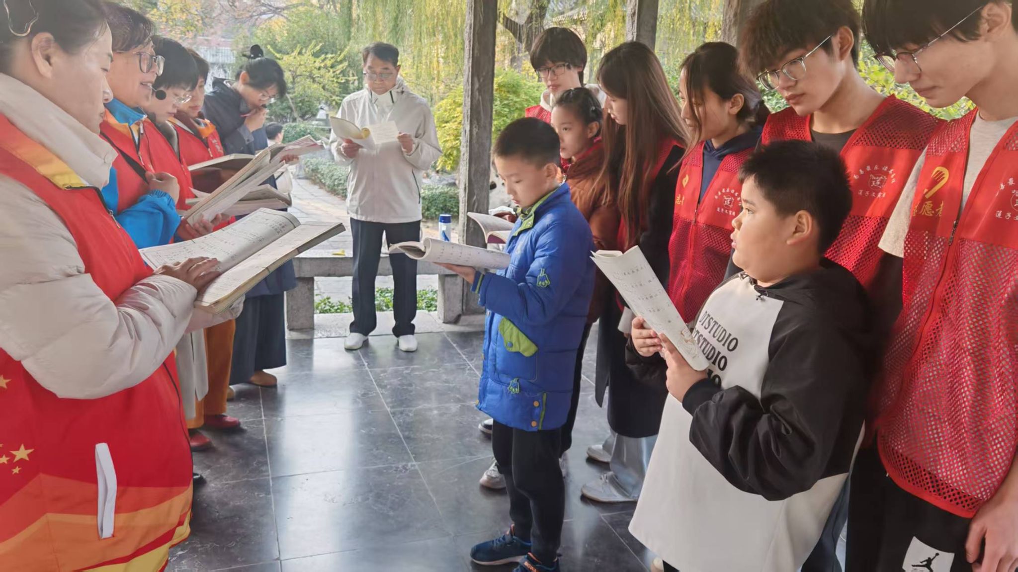 阳光先锋青年志愿者协会(以下简称"政法青协")于大明湖畔,与莲子文宣团共同开展传统文化实践活动。