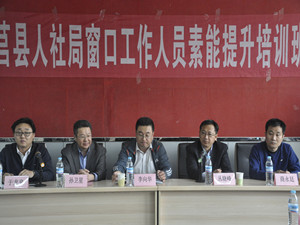 ——莒县人社局窗口工作人员素能提升第二期培训班开班仪式。莒县人力资源和社会保障局纪委书记李向华,办公室主任商永廷,毛巾哥