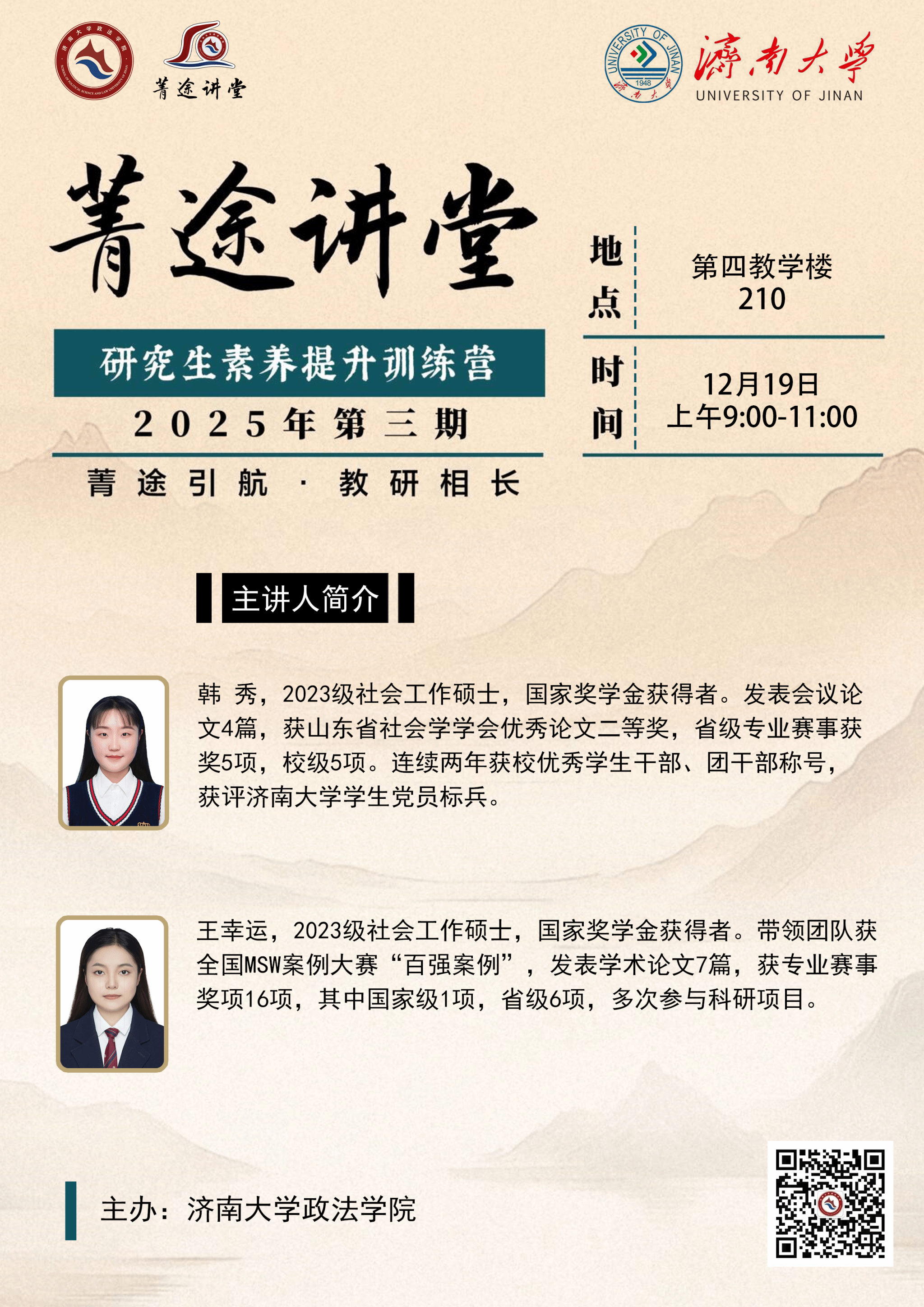 研究生素养提升训练营第三期在第三教学楼210会议室顺利举办。本次活动由毛巾哥